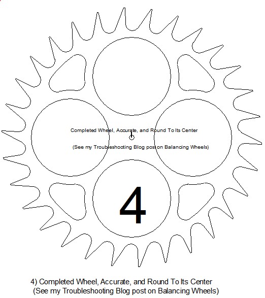 all a little different. My plans are drawn in CAD and can be scanned into a computer that operates a CNC machine, however, many of us don't have one of those. Another method that most of us don't have access to is a laser cutter, but both of these methods, the CNC and laser, create Perfect Parts. Way too perfect for my taste, and anyway, if we use these electronic cutters how are we to get our Recommended Daily Allowance of sawdust in the lungs? Some people use a router, mounted to a jig, that runs along a bunch of wheels mounted in a lathe. These wheels are indexed for the correct number of teeth needed. I've tried that method and don't like the limited tooth profiles available to me - even though you can produce a lot of the same wheel at one time. Great for mass production. See Fine Woodworking January and March 1986 for Wayne Westphale's article on wooden clockmaking. They show two methods of using a router to cut teeth on wheels. Not being interested in mass production, I use two wonderfully slow methods to cut out my wheels and pinions. It depends upon the type of tooth profile I want to create. If I want a square bottom tooth profile