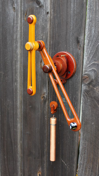 The Sticks kinetic sculpture shown here is a weight-driven sculpture, and proves that display wheels do not need to be round to have a lovely, dancing action. In my new book, we discuss how Sticks can also be converted from being weight-driven into being a spring powered mechanism.. |
